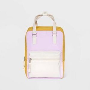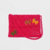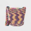 Crocheted backpack with a cotton shell. One spacious main compartment and an interior slip pocket. Matching crochet flap with a magnetic snap fastening and a drawstring closure underneath secure the contents inside. Top loop handle and adjustable shoulder straps for convenient carrying.
